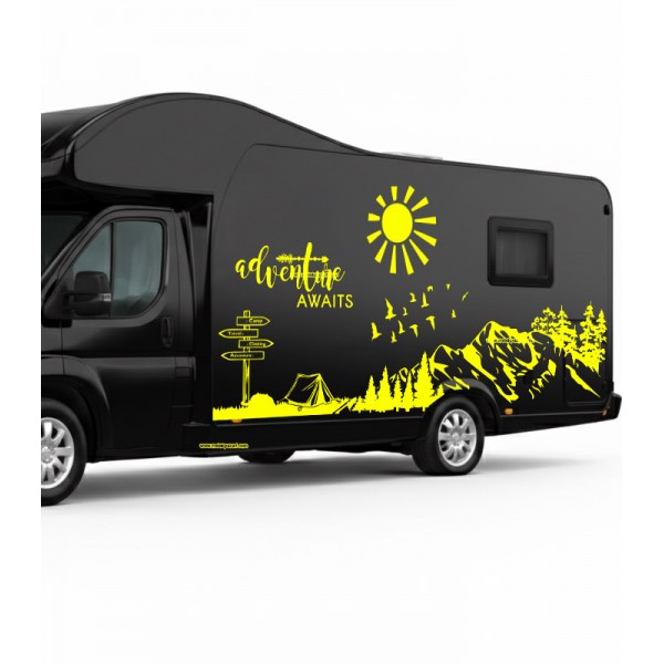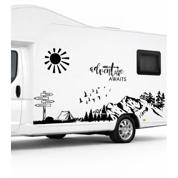 Adventure Doğa Manzarası Kamp, Karavan Sticker