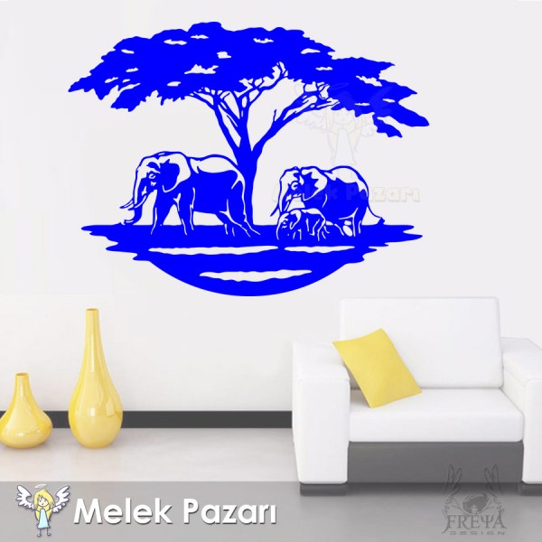 Afrika Doğa Manzarası ve Fil Sürü Duvar Sticker, Duvar Dekoru