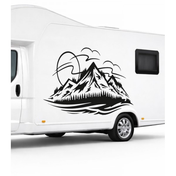 Kamp Dağ Manzarası Offroad, Karavan Sticker