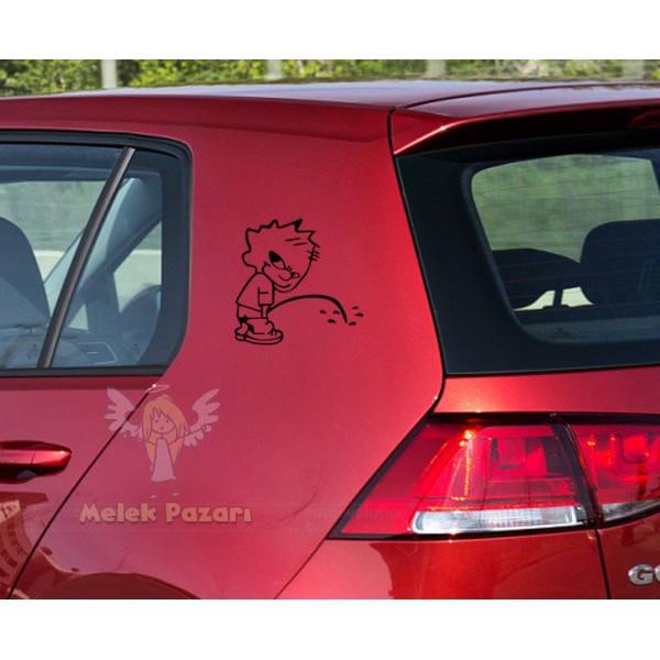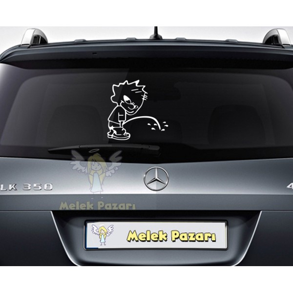 Arabaya İşeyen Yaramaz Çocuk Araba Sticker