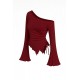 Kadın Bordo Uzun İspanyol Kollu Asimetirik Yaka Yandan Bağlamalı Drapeli Bluz