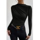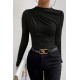 Kadın Siyah Belden ve Boyundan Büzgü Detaylı Uzun Kollu Bluz