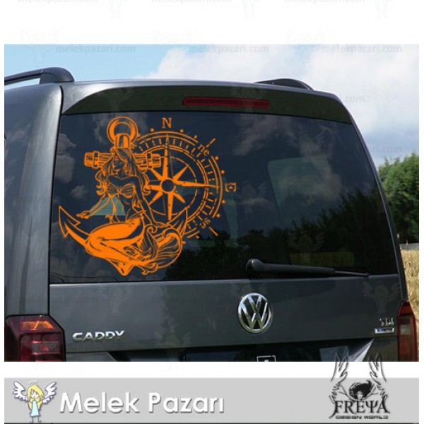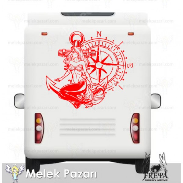 Denizkızı Pusula Karavan Sticker. Denizkızı Tekne Çıkartma