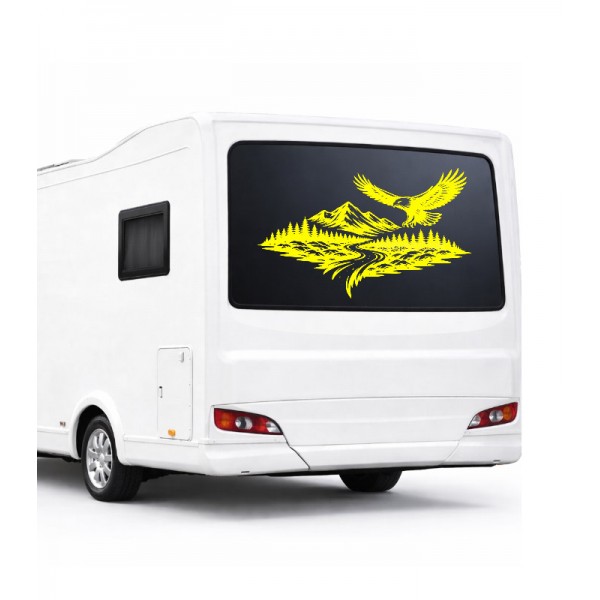 Doğa Manzarası ve Kartal Karavan Sticker |