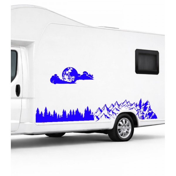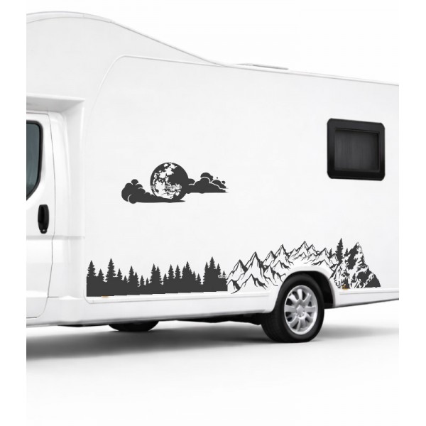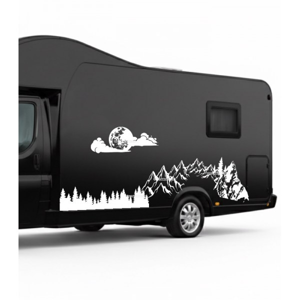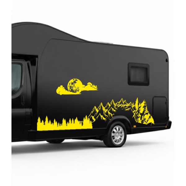 Dolunay Manzarası Kamp, Karavan Sticker |