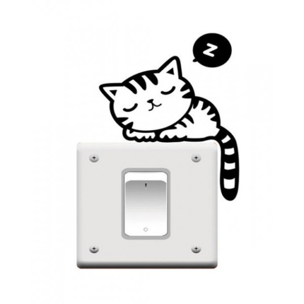 Uyuyan Sevimli Kedi Priz Sticker 4 Adet