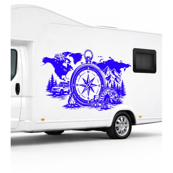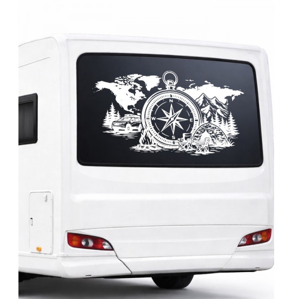 Pusula Dünya Kamp Karavan Sticker |
