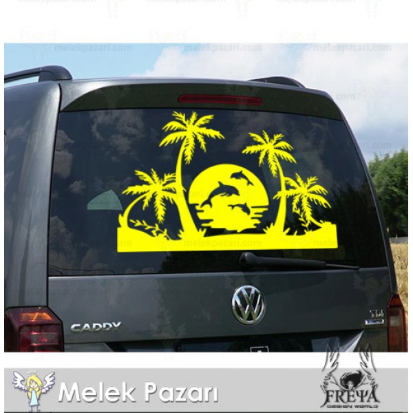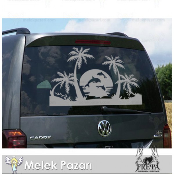 Palmiye ve Yunuslar Karavan Sticker |