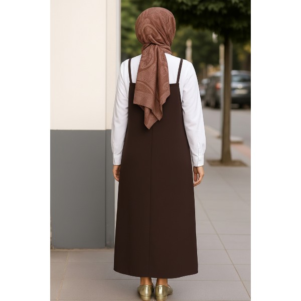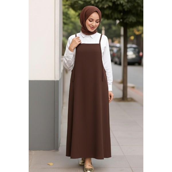 - Her kadının dolabında mutlaka bulunması gereken bu kadın acı kahverengi askılı jile elbise, hem şık hem de pratik kombinler için ideal bir seçim.