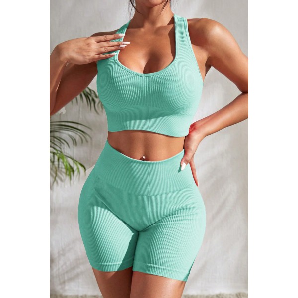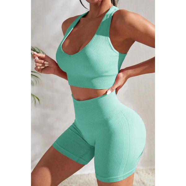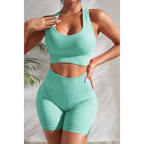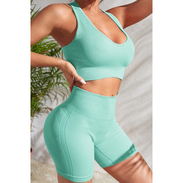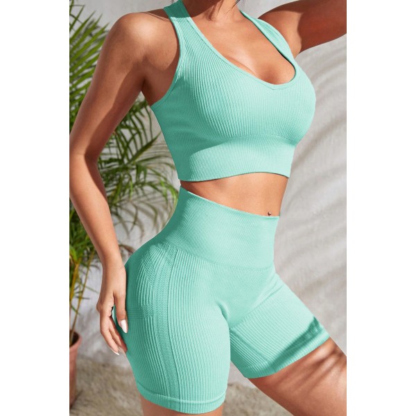Kadın Açık Mavi Yüksek Bel Çapraz Sırt Detaylı Şortlu Gecelik Takım