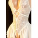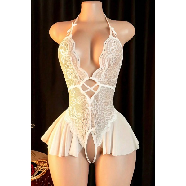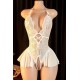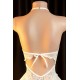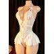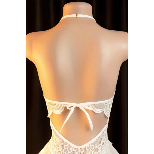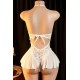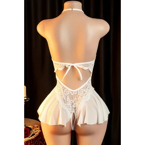 Kadın Beyaz Dantel ve Tül Detaylı Derin V Yaka Teddy Gecelik