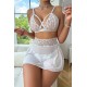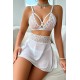 - Kadın Beyaz Göğsü ve Beli Dantel Detaylı Etekli Takım