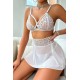Kadın Beyaz Göğsü ve Beli Dantel Detaylı Etekli Takım
