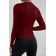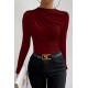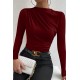 Kadın Bordo Belden ve Boyundan Büzgü Detaylı Uzun Kollu Bluz