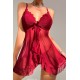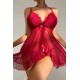 - Kırmızı Dantelli ve Fırfırlı Tül Detaylı Gecelik Takımı