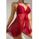 - Zarif dantellerle süslenmiş kırmızı renkteki bu gecelik takımı, feminen dokunuşlarıyla göz alıcıdır.