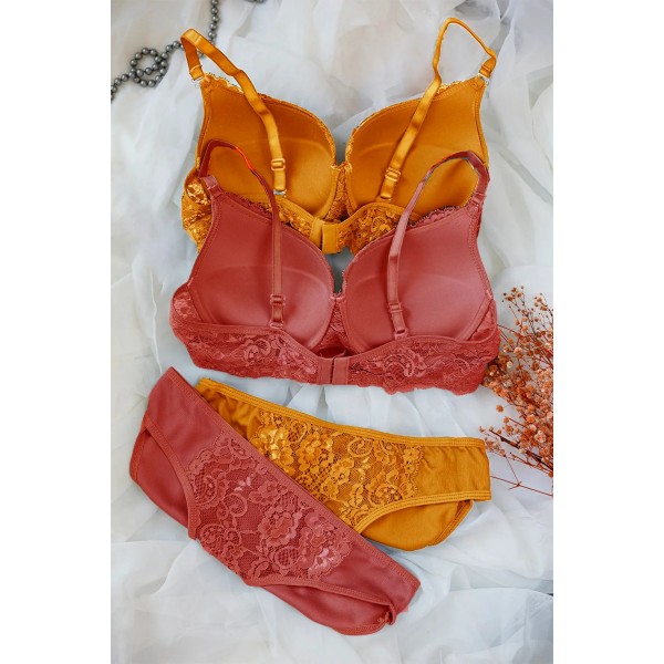 Kadın Hardal Ve Kiremit Rengi Dolgulu Balenli Sütyen Külot 2'li Paket