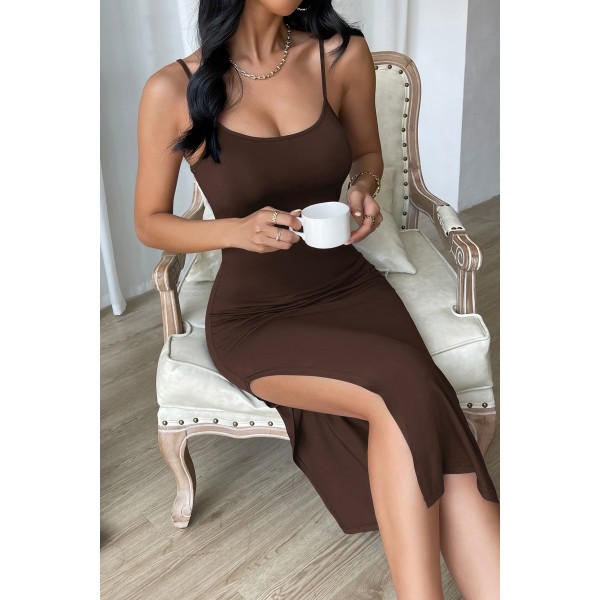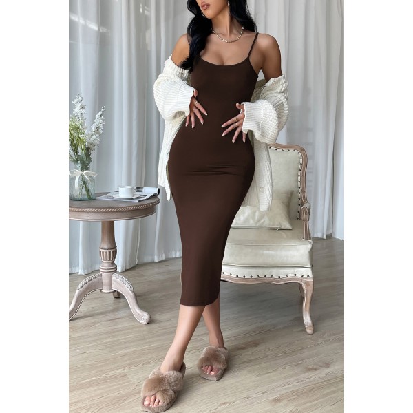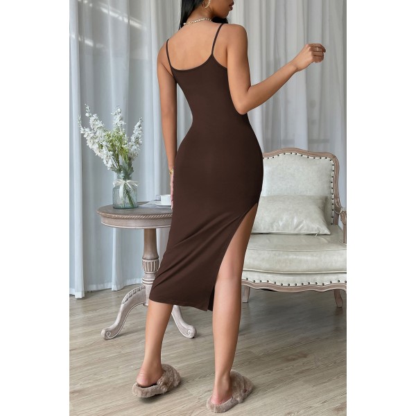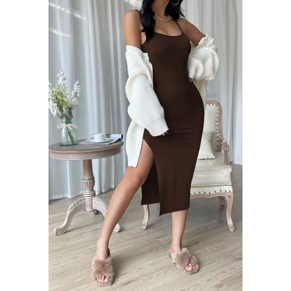 Kadın Kahverengi Yırtmaçlı Diz Altı Vücüdu Saran Gecelik