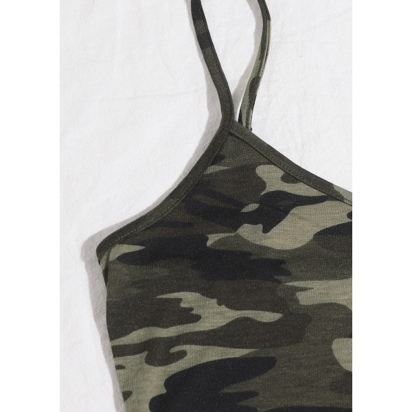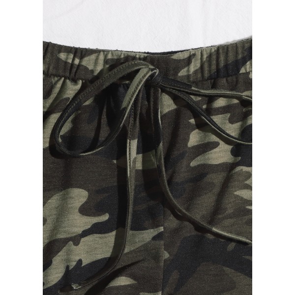 - Askılı Crop ve Şortlu Kamuflaj Desenli Gecelik Takım