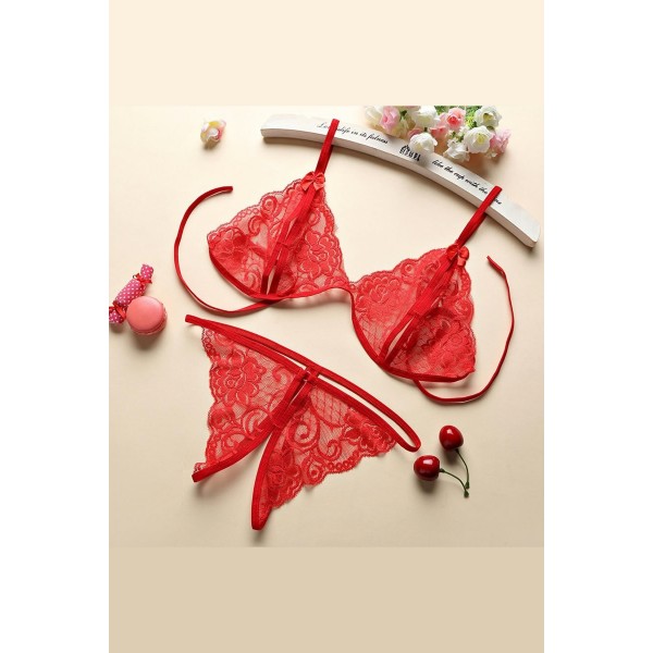 Kadın Kırmızı Dantelli Sütyen Külot Takımı