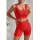 Kadın Kırmızı Kalın Askılı Yüksek Bel Şortlu Gecelik Takımı