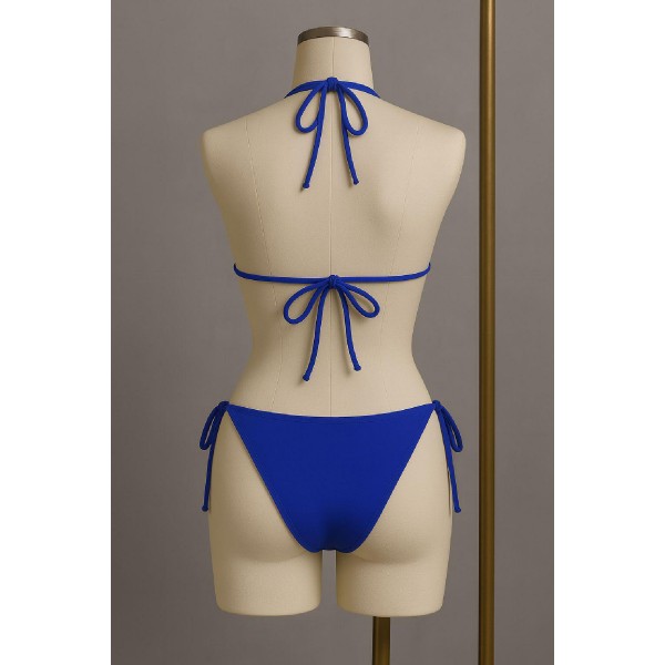Kadın Mavi Yandan ve Boyundan Bağlamalı Bikini Mayo Takımı