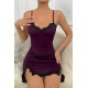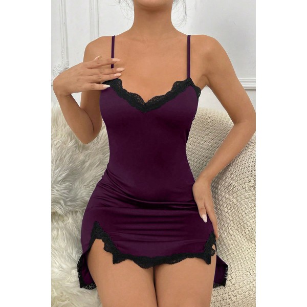 Kadın Mor Göğsü ve Bacakları Dantelli Yırtmaçlı Şık Gecelik