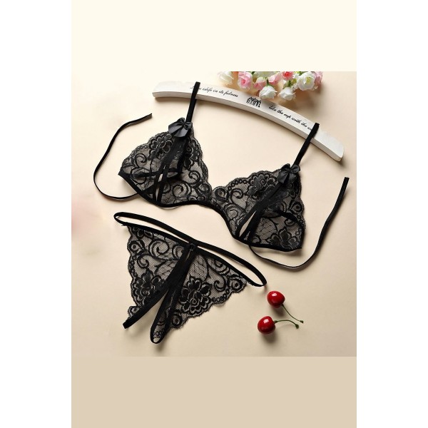Kadın Siyah Dantelli Sütyen Külot Takımı