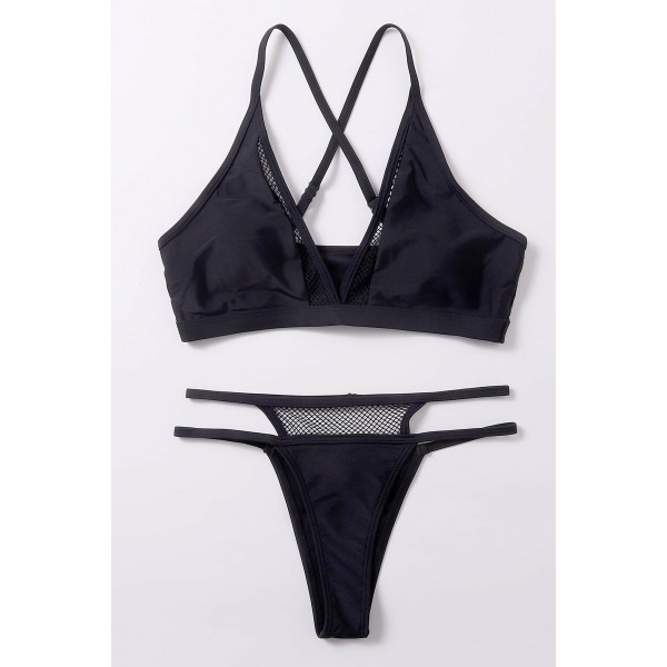 Kadın Siyah File Detaylı Özel Bikini Takımı