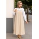 - Taş renginin modern ve sofistike havasıyla her ortama ayak uyduran bu elbise, sade şıklık arayan kadınların favorisi olacak.