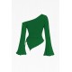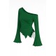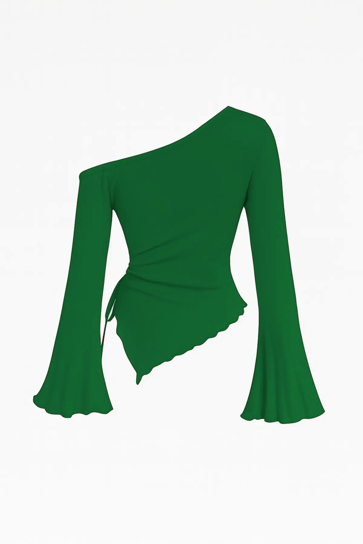Kadın Yeşil Uzun İspanyol Kollu Asimetirik Yaka Yandan Bağlamalı Drapeli Bluz
