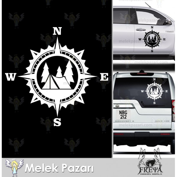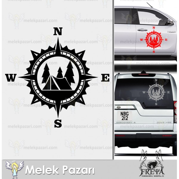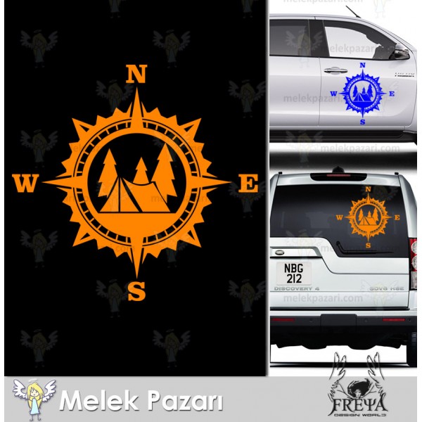 Kamp Çadırı Pusula Off Road Karavan Sticker. Pusula Karavan Çıkartması
