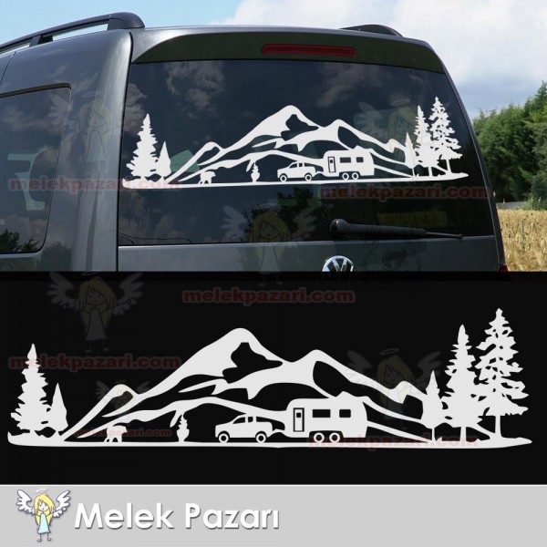Kamp Orman Manzara Karavan Sticker, Kamp Sticker