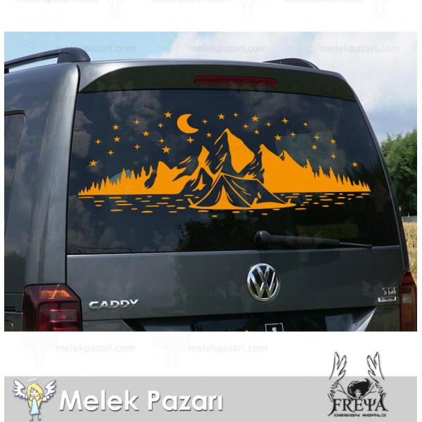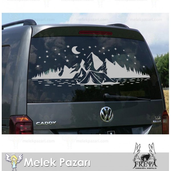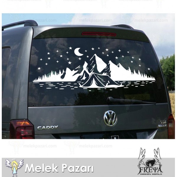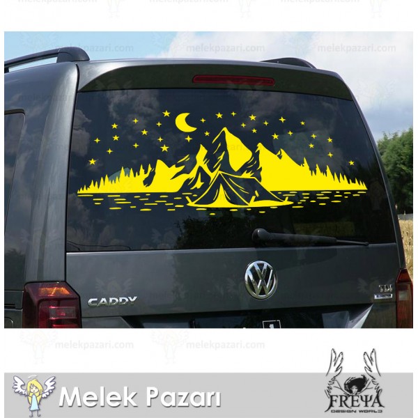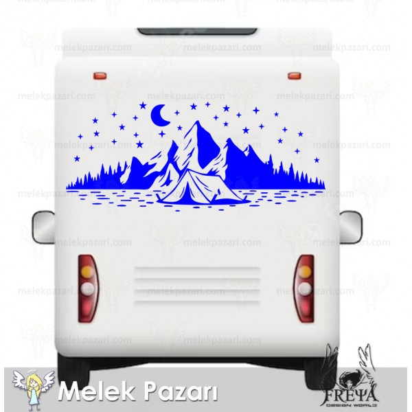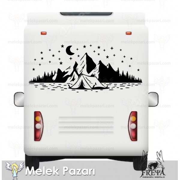 Kamp Çadırı Ay ve Yıldırlar Manzara Karavan Sticker