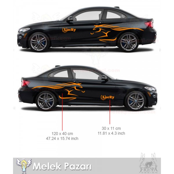 Lucky Yarış Atı Yan Gövde Sticker. At Oto Çamurluk Sticker
