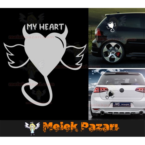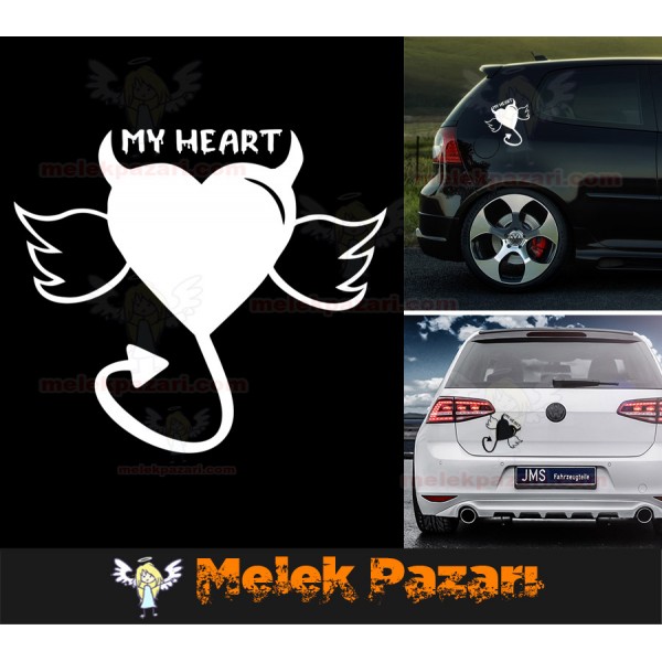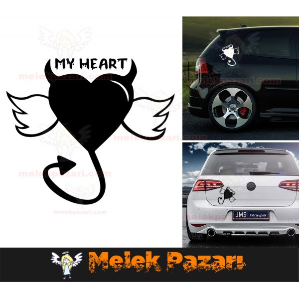 Melek Kanatlı Şeytan Kalp Oto Sticker, Araba Stickerı