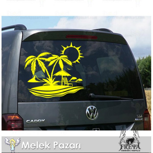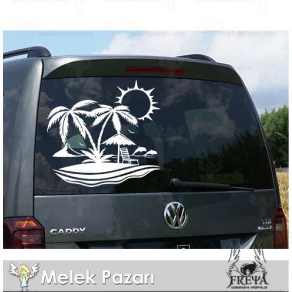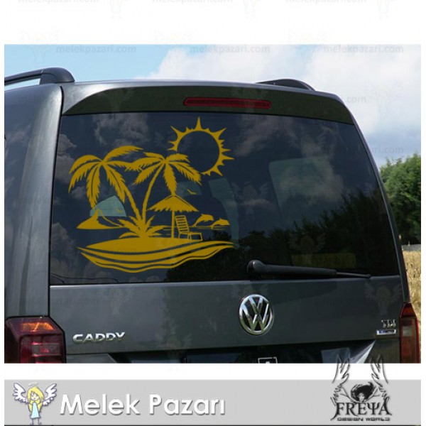 Palmiye ve Yunuslar Manzara Karavan Sticker. Karavan Çıkartmaları