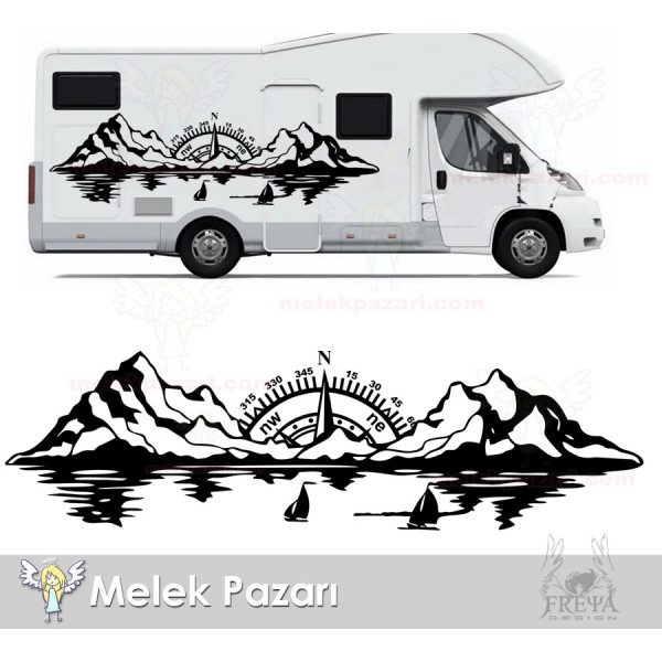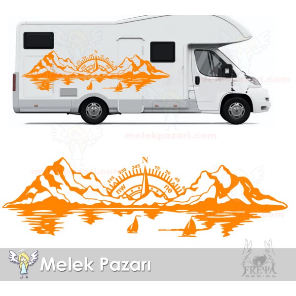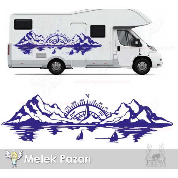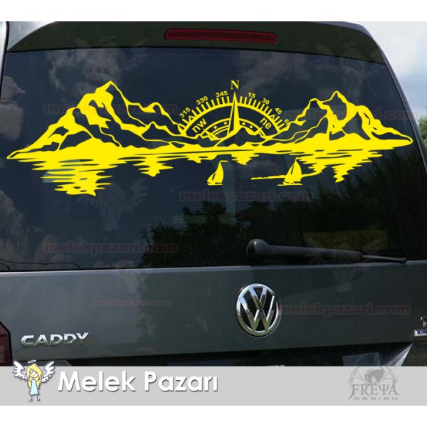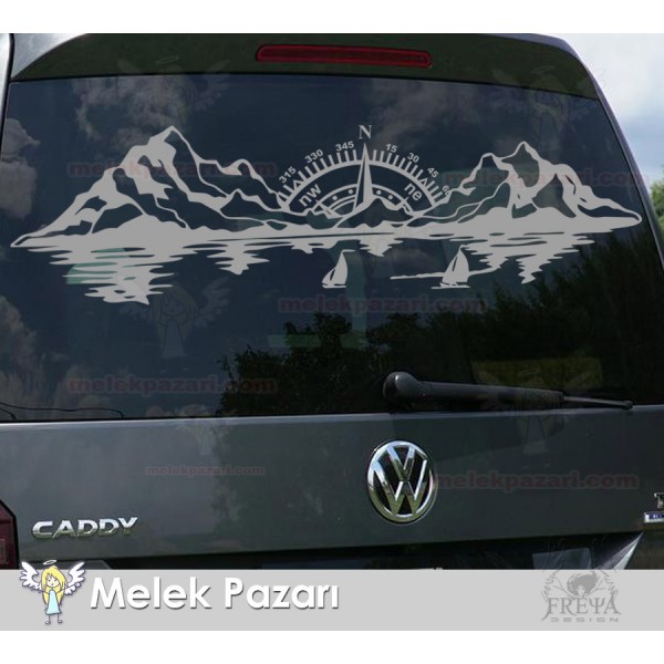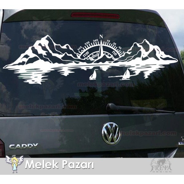 Pusula Dağ Deniz Doğa Manzara Off Road Kamp Karavan Sticker