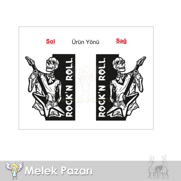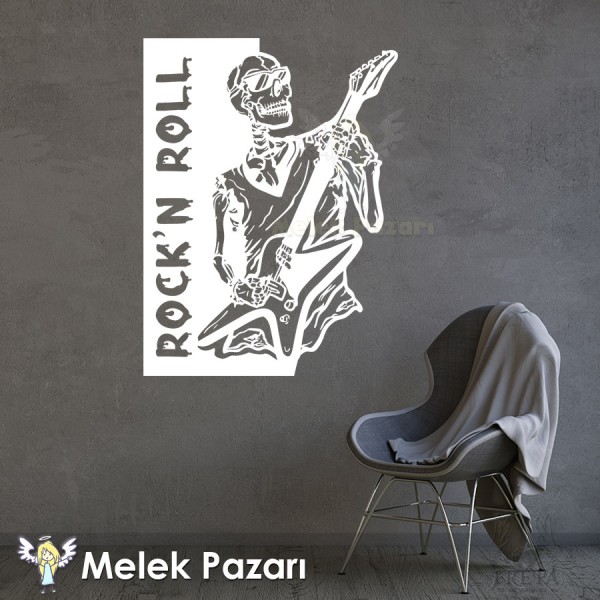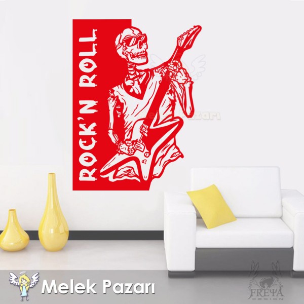 Rock'n Roll İskelet Müzik Duvar Sticker - Yazı Değiştirilebilir