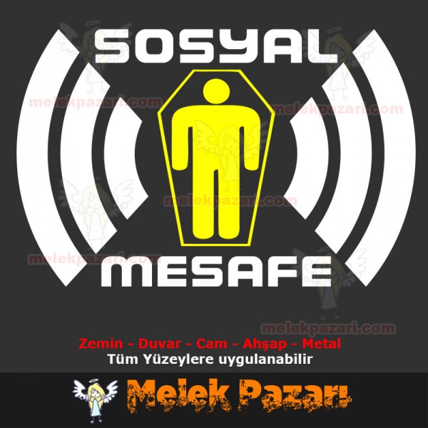 Sosyal Mesafe Tabut Uyarı Sticker, Çıkartma