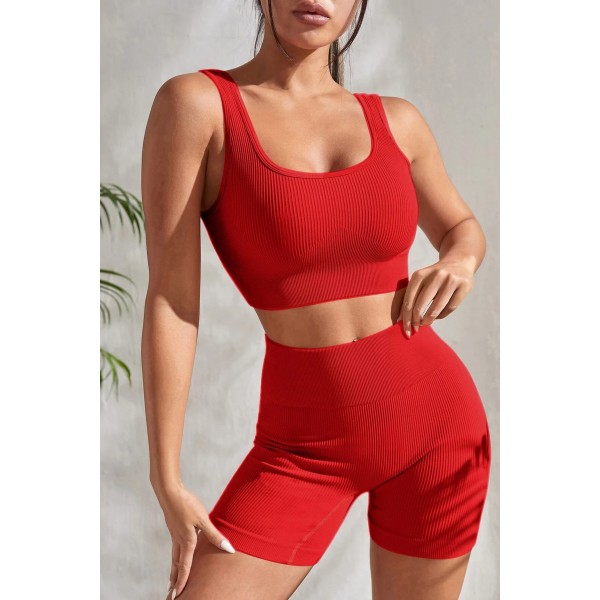 Kadın Kırmızı Kalın Askılı Yüksek Bel Şortlu Gecelik Takımı
