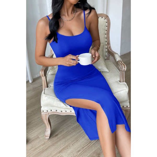 Kadın Mavi Yırtmaçlı Diz Altı Vücüdu Saran Gecelik