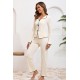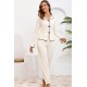 Kadın Ekru Fitilli Şık Pijama Takımı – Fiyonk Detaylı Rahat Ev Giyim Seti