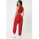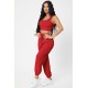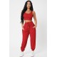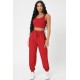 Kadın Kırmızı Kaşkorse Cepli Jogger Eşofman Altı ve Crop Top Bluz