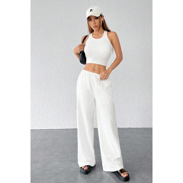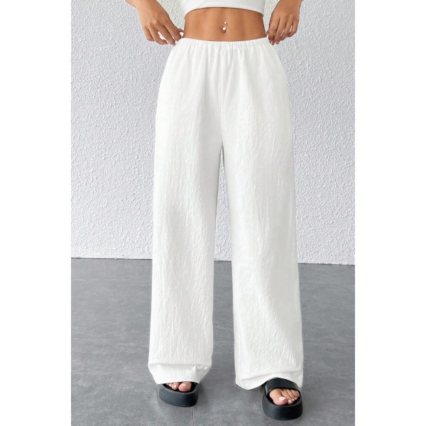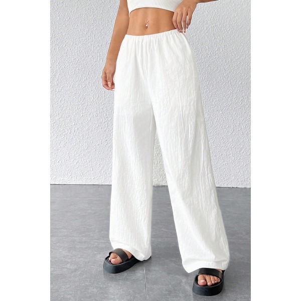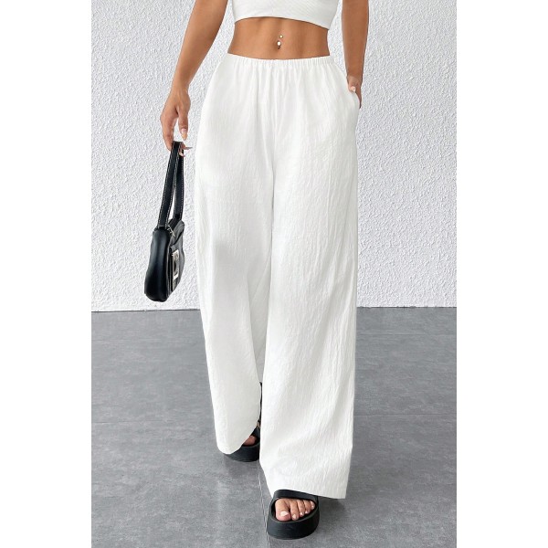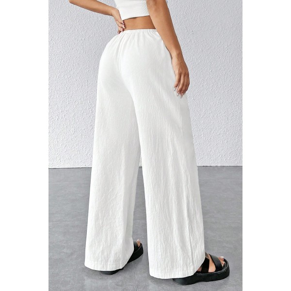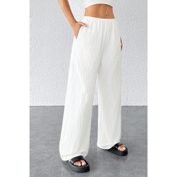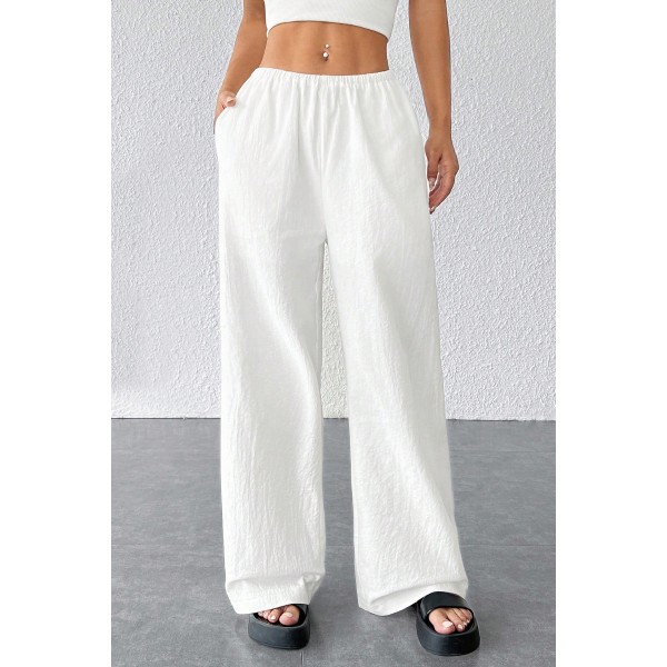 Kadın Beyaz Bol Kesim Cepli Geniş Paça Dökümlü Pantolon