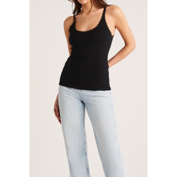 Kadın Siyah Normal Kalıp Dantel Detalı Ince Askılı Oyuk Yaka Atlet