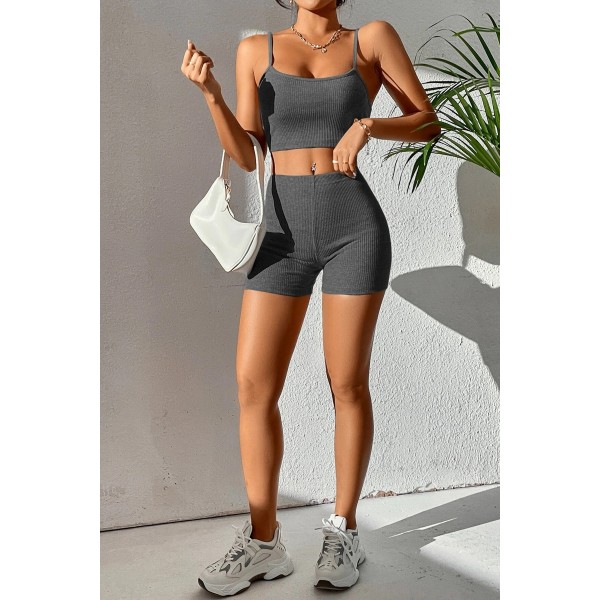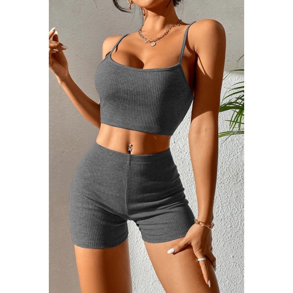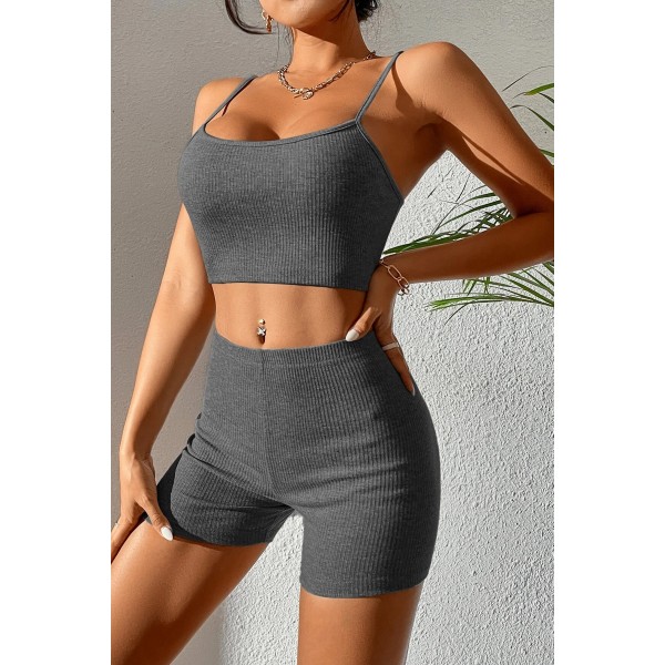 Kadın Antrasit Gri Şortlu Kaşkorse Gecelik Takım