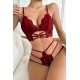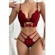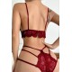 Kadın Bordo Dantel Cut-Out Detaylı Şık Sütyen ve Külot Takımı