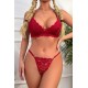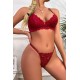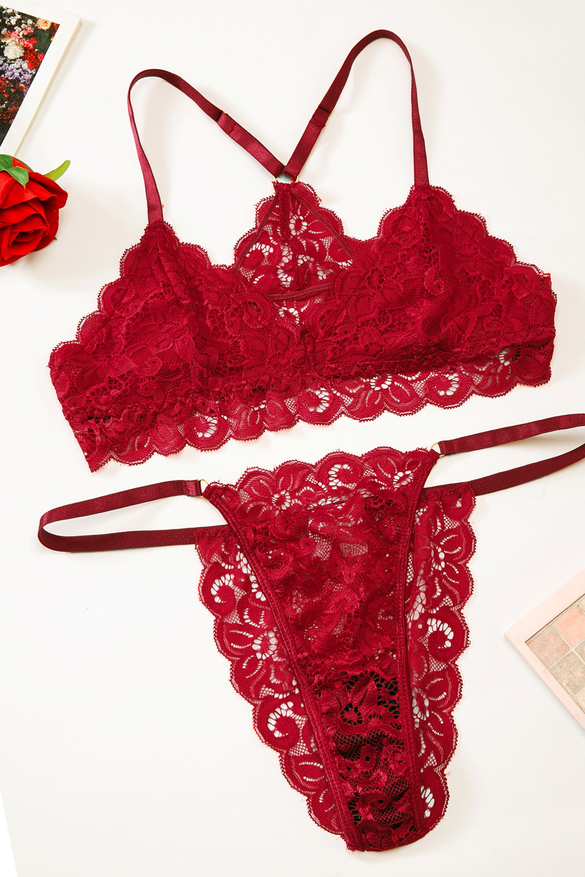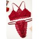 Kadın Bordo Sırtı Dantel ve İp Detaylı Şık Sütyen Külot Takımı