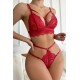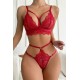 Kadın Kırmızı Cut-Out Büstiyerli Beli Çapraz Lastikli Külotlu Çamaşır Takımı